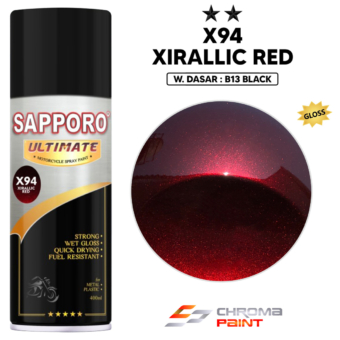 Rp 45.000Cat Semprot Sapporo Ultimate X94 Xirallic Red Kilau Diamond Tahan Bensin