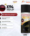 Sapporo Ultimate X94 Xirallic Red adalah cat semprot premium dengan warna merah bergradasi unik. Dalam kondisi gelap, warna ini tampak seperti hitam pekat, tetapi saat terkena cahaya, kilauan Xirallic Diamond akan muncul dengan efek merah yang berkilau. Hasil akhirnya Metallic Glossy, memberikan tampilan mewah dan eksklusif.