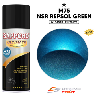 Rp 65.000Sapporo Ultimate M75 NSR Repsol Green – Cat Spray Hijau Kebiruan Glossy 400ml