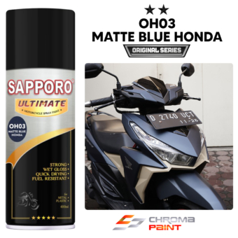 Sapporo Ultimate OH03 Matte Blue Honda Sapporo Ultimate OH03 Matte Blue Honda adalah cat semprot premium dengan warna biru doff khas Honda. Warna ini memiliki kesamaan >95% dengan Matte Blue Honda Original dan menggunakan formula 4in1 sehingga tidak membutuhkan primer, warna dasar, atau clear coat. Cocok untuk repaint bodi motor, mobil, velg, atau proyek DIY…